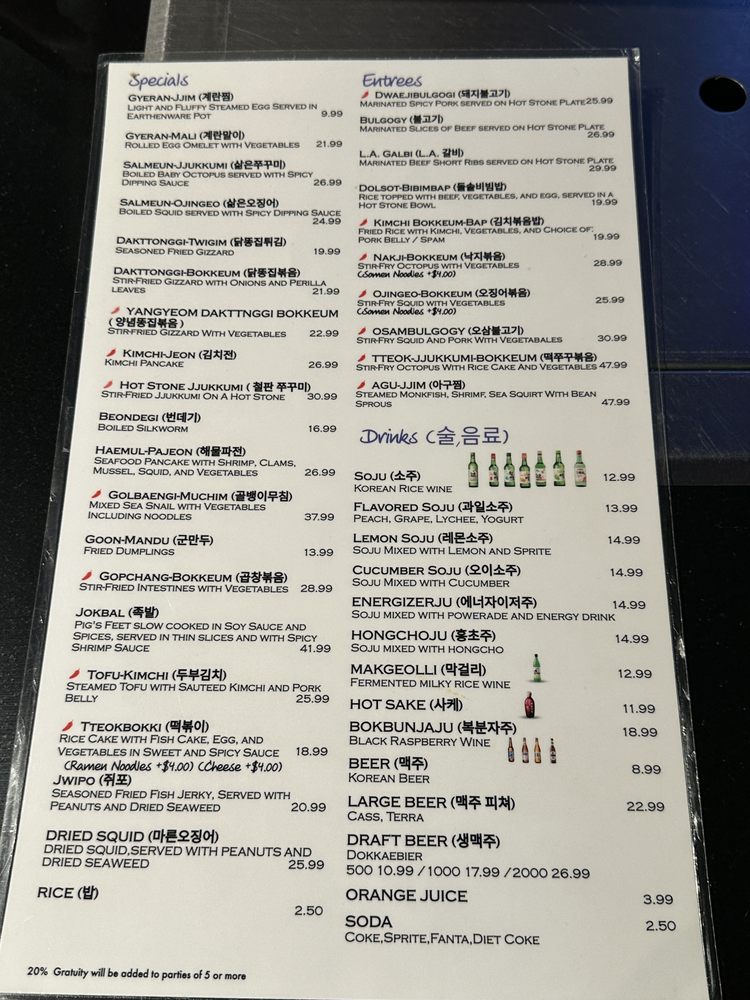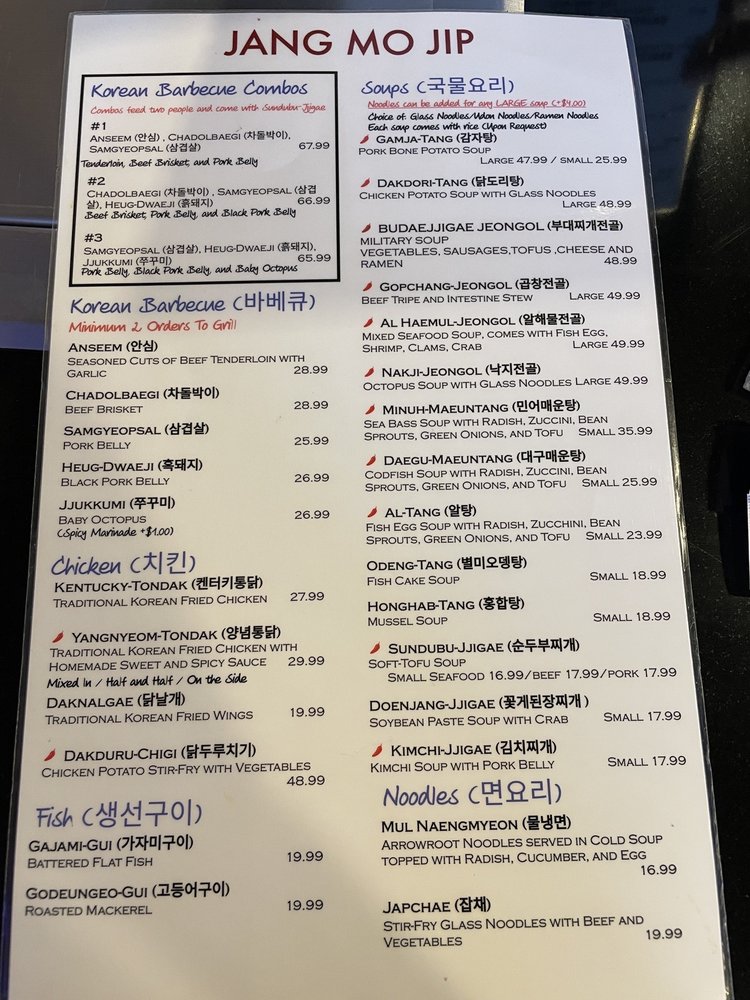 Jang Mo Jip, a Korean restaurant in Santa Clara, CA, offers a diverse menu featuring delicious banchan, spicy stir-fried octopus, deep fried mandu, and kimchi jiggae. Customers rave about the cozy, home-cooked flavors that remind them of a Korean mom's cooking. The gamjatang, kimchi pancake, kimchi fried rice, and tteokbokki are highly recommended dishes that stand out for their authenticity and excellent flavors. The banchan is particularly praised for its variety and spice levels, with the fish cake being a standout favorite. The lemon soju and Korean fried chicken also receive high praise, making Jang Mo Jip a must-visit spot for Korean food enthusiasts. The restaurant's ambiance and service are noted to be authentic and welcoming, enhancing the overall dining experience.